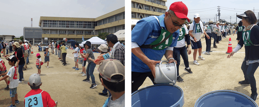 5/26㈰に、当社を含めた蟹江町の5つの建設会社が協賛した7つの町内会などが主催の第9回新蟹江学区防災運動会が新蟹江小学校で開催されました。