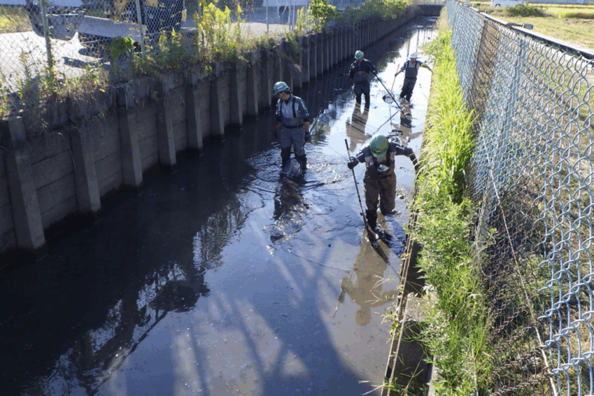 『現場の水路にアカミミガメがたくさんいるよ~!なんとかしてくれ~!!』と連絡が入りました。