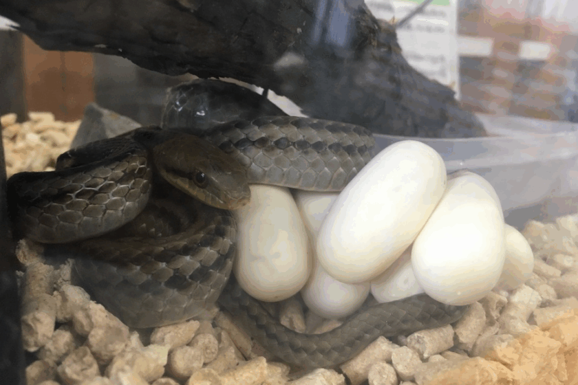 実は2ヵ月ほど前の7月18日に現場で保護したシマヘビさんがタマゴを生みまして・・・。