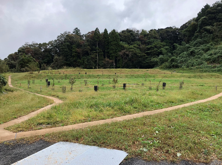 この場所は、開発によって失われた自然を樹木葬という形で地域の自生種を植樹し長い年月をかけて自然に戻すという取組です。