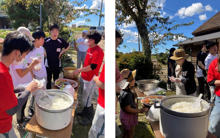 昼食では、炊き立てのご飯と地元の食材を活かしたおかずやお味噌汁をいただきました。