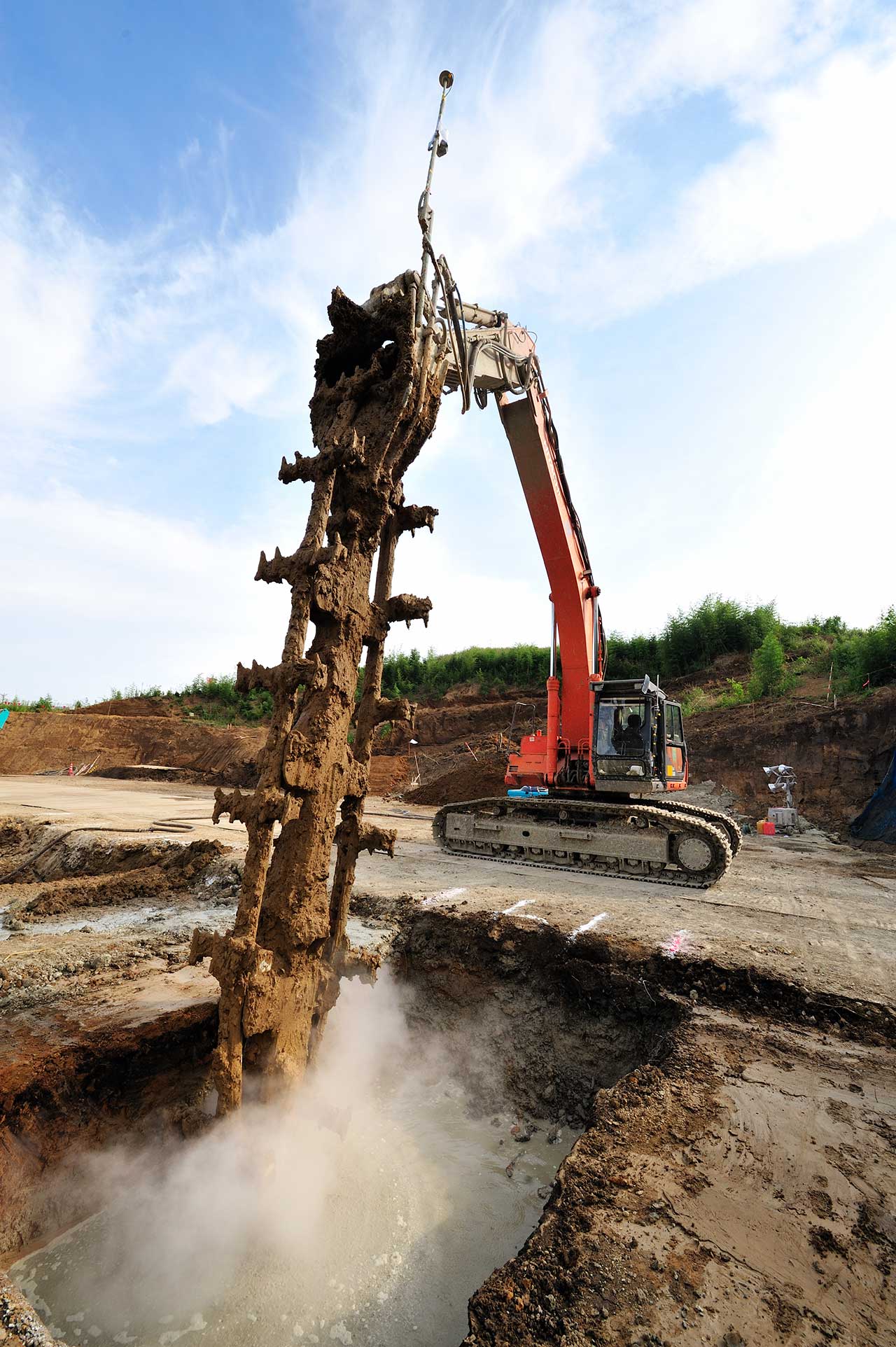 ハイブリッド建機など、環境対策型の重機の導入も実施しています。また、中層地盤改良技術のパワーブレンダー工法を進化させたヒートソイル工法では、使用するセメント量の低減により、物理的にCO2排出量の削減が可能です。