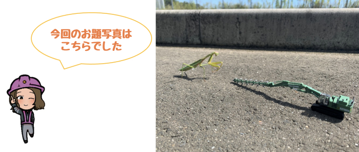 カマキリににらまれている状況でビビっているのに勇気あるパワーブレンダーですね(>_<)