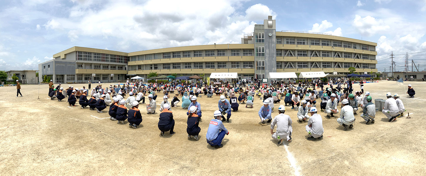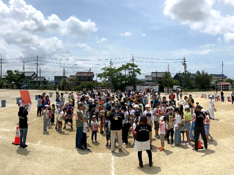 蟹江町の7つの町内会、PTA、子供会などが主催をする防災運動会に協力しています。元々は2011年に当社から提案をして始まったイベントで、企画、準備、運営全てに携わってきました。現在は当社を含め、地元の建設会社5社の協賛で開催しています。「楽しみながら防災意識を高めよう」というテーマで楽しみながら防災意識を高めてもらうために、様々な競技を実施しています。