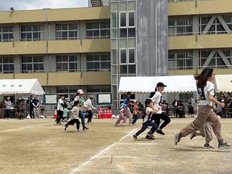 園児とその保護者が一緒に手をつないで、はぐれないように走るかけっこです。