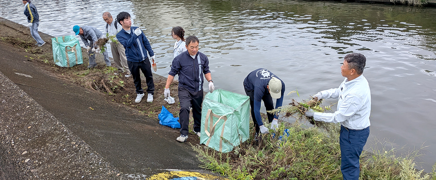 私たち加藤建設は、地元蟹江町の一斉清掃および蟹江川をきれいにする会に毎年(年2回)参加しております。