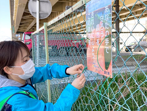 月に1回ゴミを拾うだけでは、きれいな街を実現するのは難しいと考え、ゴミを捨てないことを呼びかける看板を設置することにしました。