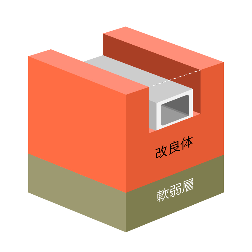 原位置土に改良材を供給し化学的に反応させて土質性状を安定させる機械撹拌工法です。